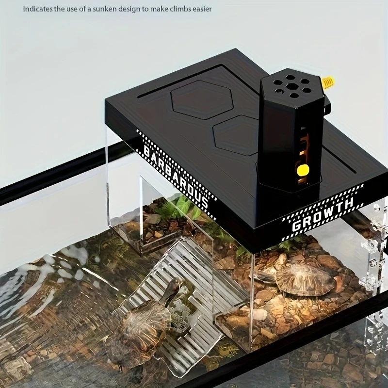 Isleta Flotante de Plástico Duradero para Tortugas con Lámpara Calefactora – Plataforma Antiescápula y Calor para Brasileses, Accesorio para Tanque de Reptiles Acuáticos con Diseño de Plantas Acuáticas.