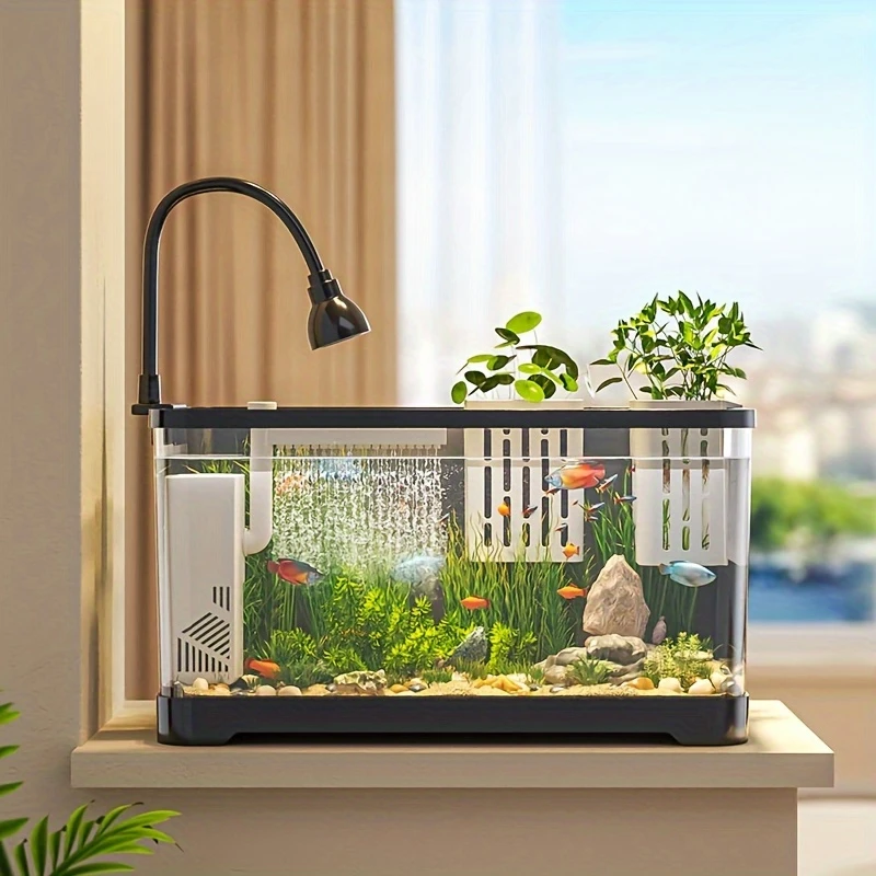 Acuario cuadrado de 10 galones de acrílico con fondo negro opaco, ideal para tortugas, camarones, peces dorados, cangrejos y ranas – Hábitat de alta calidad, fácil mantenimiento con agujeros de drenaje, uso interior/exterior, decoraciones de acuario
